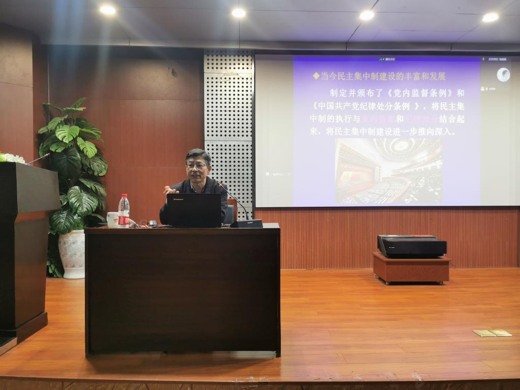 牟仁刚向同学们详细介绍了民主集中制的基本内容及其形成与发展,并阐述了坚持和健全民主集中制的必要性及重要性。随后,他就内容、特征、形式以及处分四个方面介绍了党的纪律,并通过国家反腐倡廉行动中鲜活的事例,强调党纪面前人人平等。最后,牟仁刚要求同学们,要自觉遵守党的纪律,提升自身党性修养,做一名合格的共产主义接班人。