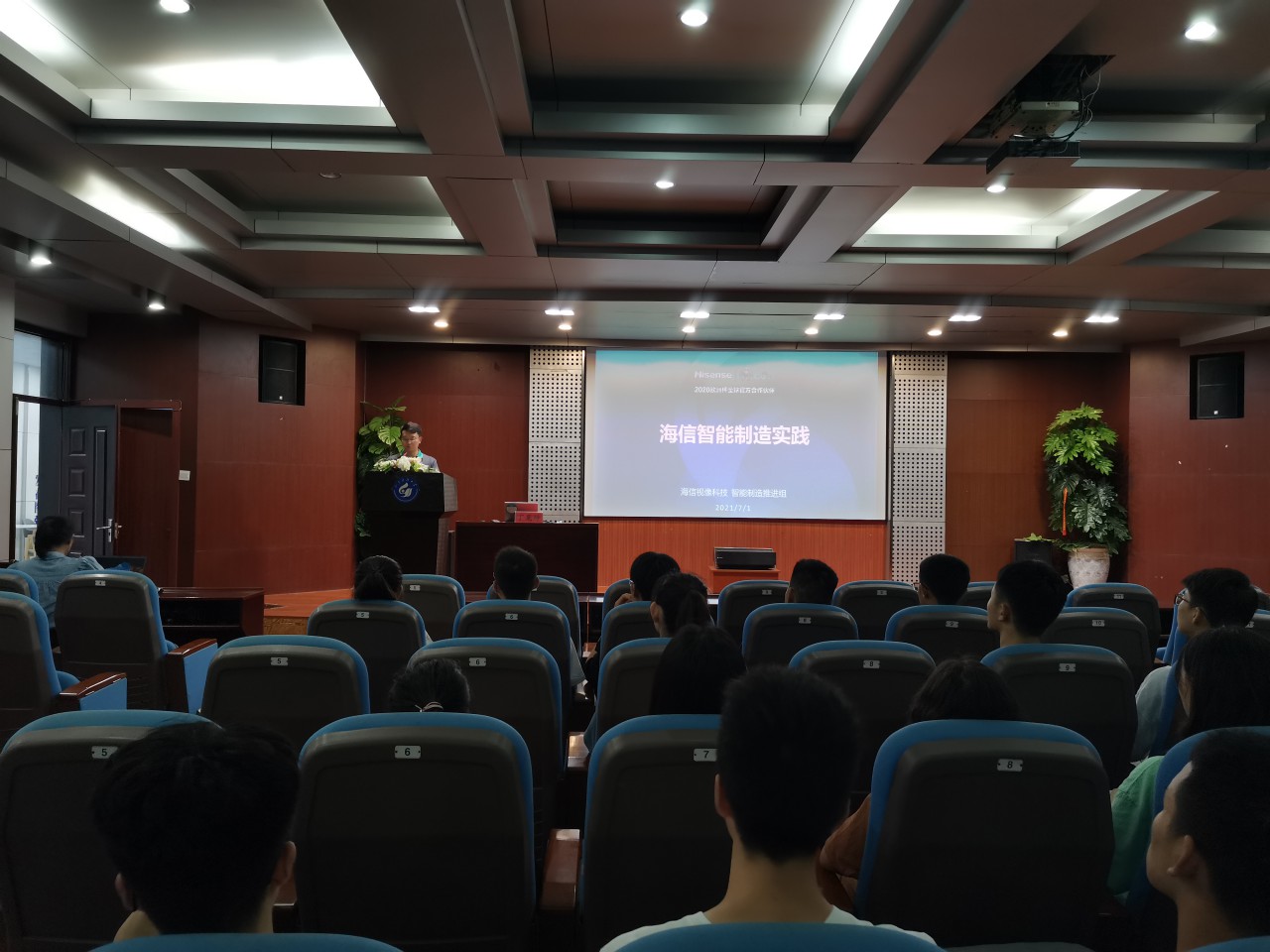 点击:7月1日晚,“嵙大·海信班”企业班主任丁觅坤在bv伟德报告厅为班级学员作“海信智能制造实践”主题讲座。来自机电、电信等5个公司的20余位同学参加讲座,“嵙大·海信班”企业班老师贾玉玉主持。