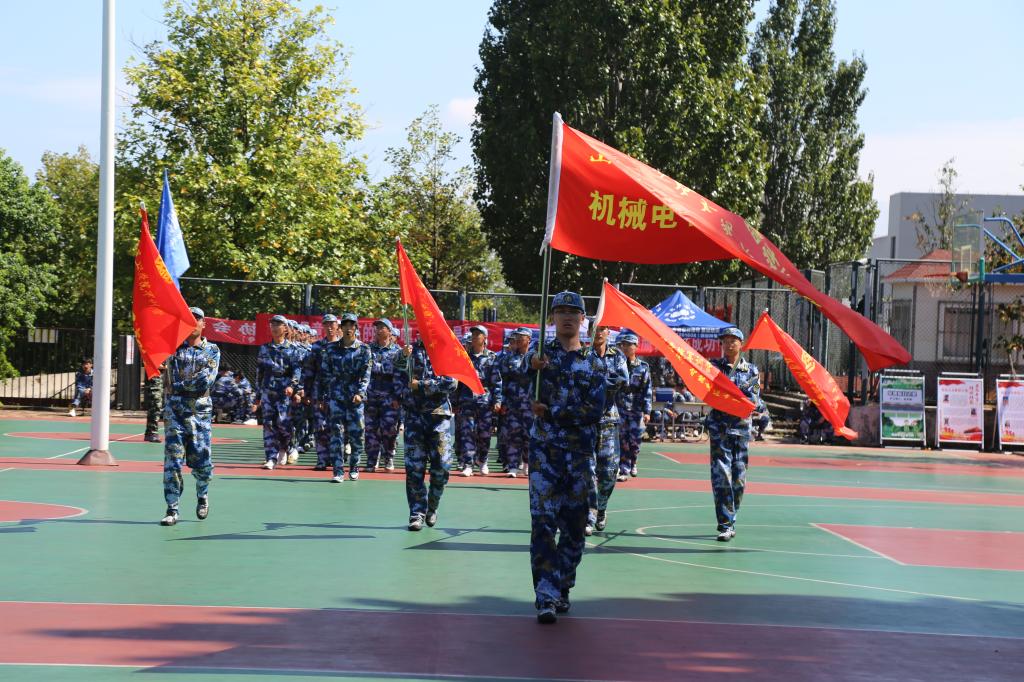 分列式训练以“齐步变正步”为核心,注重动作规范与团队协作。机电公司的学子们在教官指导下反复打磨摆臂高度、步伐间距,烈日下汗水浸透衣衫,却无人松懈。每一次踢腿定型、摆臂发力,都凝聚着对“整齐划一”的极致追求。公司方队则通过“分解练习+整体合练”模式,从单列行进到多列协同,逐步提升排面整齐度。教官强调:“正步的‘秒米不差’不仅考验个人素质,更需集体默契。”
