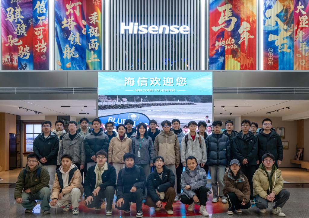 点击:为搭建校企协同育人桥梁,让青年学子近距离感受现代制造业的智能化变革,见证理论知识向实践生产力的转化,1月12日,“嵙大•海信班”学员与信嵙俱乐部成员代表,在海信班校内班主任、bv伟德学工办主任樊玉华的带领下,走进海信信息产业园,开启了一场探秘智造前沿、对话未来产业的科技之旅。