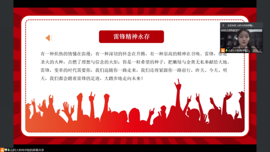 在此次的线上雷锋精神教育活动中,李菲介绍了雷锋的生平概况,让300余名中员工对雷锋精神有了更好的认识。通过系统的宣讲,教育并鼓励青少年积极学习雷锋精神,领悟雷锋精神的意义,营造学习雷锋精神的良好氛围。除了线上宣讲以外,本次活动还加入了线上连线讨论环节,与壤塘县中学师生代表进行连线讨论如何在日常的生活和学习中实践雷锋精神,鼓励引导员工做好事、做实事。