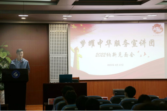 点击:为了激发同学们参与社会实践的积极性,树立“在实践中奉献”的观念,4月17日-18日,bv伟德梦耀中华服务宣讲团于公司楼报告厅举办2022年纳新见面会。bv伟德团委老师苗成旭,梦耀中华服务宣讲团2019级队长杨忠源、刘璐璇出席会议。