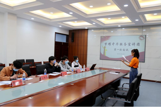 随后,60名同学进行第一轮面试,他们依次进行自我介绍,表达自己想要在社会实践中服务奉献的决心,同时,面试官们也与同学们就社会实践等问题进行交流探讨。